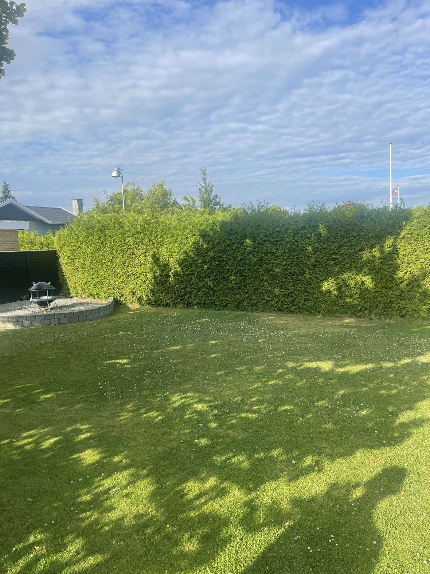 Hækkeklipning, græsslåning, ukrudtsbekæmpelse og løbende pasning.